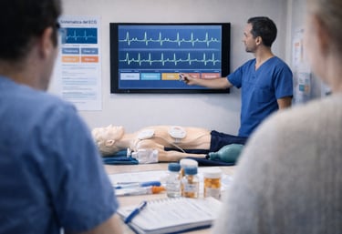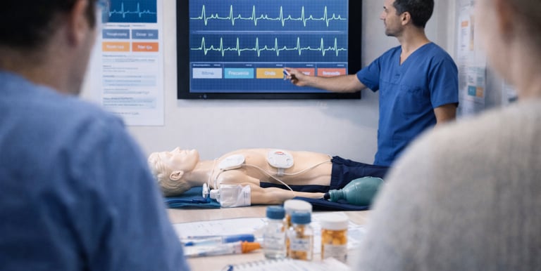 Interpretación de ECG, farmacología en escenarios críticos, razonamiento clínico estructurado.